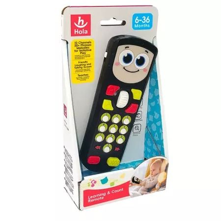 Telecomanda interactiva de la hola este dotata cu 10 canale, peste 50 de fraze si melodii pentru imitatie. Imita o telecomanda adevarata, ajuta la dezvoltarea limbajului. dotata cu un ecran cu fata prietenoasa care rade si vorbeste, cu lumini intermitente care incurajeaza vorbirea. Are 9 rime muzicale, efecte sonore pentru animale, instrumente si vehicule. Conceputa special pentru mainile bebelusilor, telecomanda are un design colorat si prietenos, cu butoane mari si usor de apasat. Functiile sale includ sunete amuzante si melodii interactive, invatarea numerelor si a culorilor, stimularea abilitatilor motorii fine si a atentiei. Este fabricata din materiale sigure si durabile, fiind potrivita pentru copiii cu varsta de peste 6 luni.