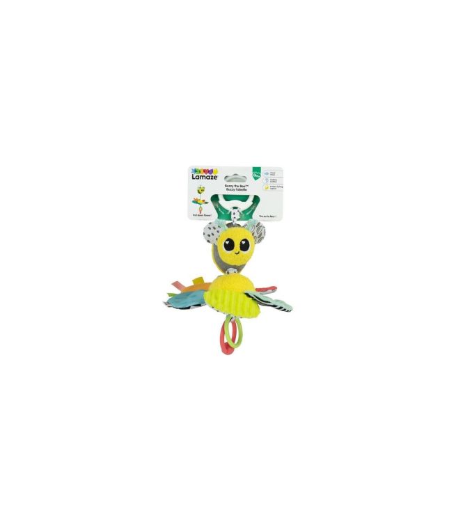 Albinuta Buzzy are culori captivante, materiale moi la atingere, inele zornaitoare distractive si inel de prindere.