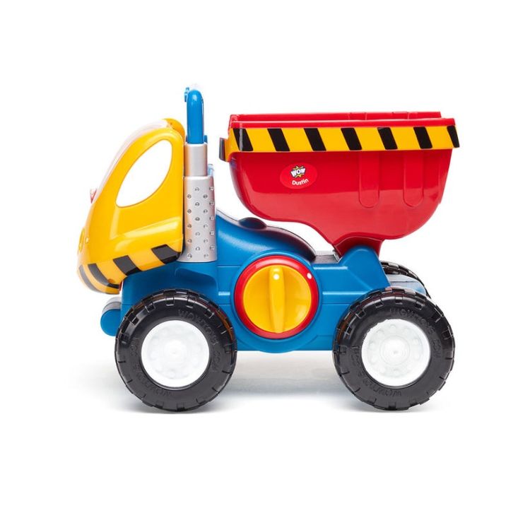 Jucarie pentru copii WOW Toys, Autobasculanta – Dustin Dump Truck este o jucarie interactiva de tip Push & Go, destinata copiilor cu varste intre 1 si 5 ani. Dustin este pregatit pentru orice sarcina de pe santier, transportand si descarcand incarcatura cu usurinta.