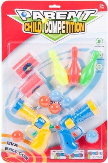Jucarie set 2 pistoale cu bile din spuma si popice, 28x43cm, MegaCreative, 461271