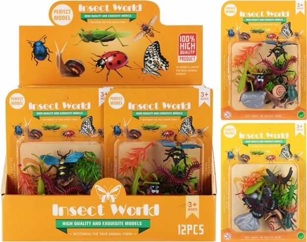 Acest set de figurine reproduse realist permite copiilor să exploreze diversitatea lumii insectelor - buburuze, fluturi, păianjeni, gândaci și călugărițe.