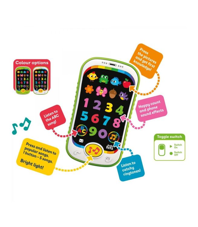 Jucaria Telefonul Inteligent de la KIDS HITS este companionul perfect pentru cei mici, combinand joaca cu invatarea prin sunete, lumini si melodii vesele. Ideala pentru copii de peste 2 ani, stimuleaza dezvoltarea cognitiva si muzicala intr-un mod distractiv.