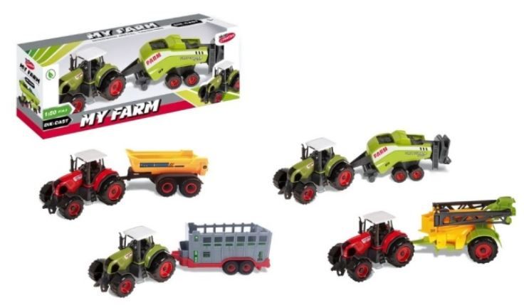 Conținutul setului: Tractor cu mașină agricolă detașabilă.