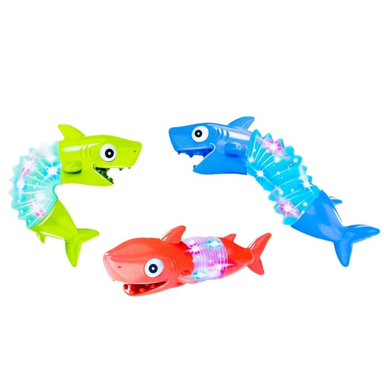 - Figurinele rechini sunt disponibile in 4 culori stralucitoare: violet, albastru, verde si rosu, care pot atrage cu usurinta atentia copiilor.