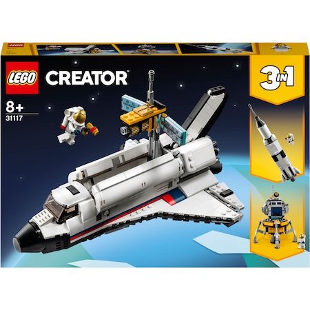 Seturile de joc LEGO Creator 3 in 1 deschid o lume a posibilitatilor cu 3 modele diferite de creat in fiecare cutie! Copiii vor fi fascinati pe masura ce construiesc, reconstruiesc si construiesc din nou! Seturile Creator 3 in 1 impulsioneaza joaca imaginativa cu o gama impresionanta de modele, inclusiv masini rapide, animale cool si cladiri super-distractive. Exploreaza hotarele galaxiei cu aceasta uimitoare Naveta spatiala. Preia controlul din carlinga si avanta-te in spatiu cu minifigurina astronaut cool. Odata ce aterizezi, reconstruieste naveta intr-o racheta impresionanta pentru mai multe aventuri interstelare, sau intr-un modul lunar pentru a calatori pe suprafata lunii! Joaca-te printre stele cu acest senzational set 3 in 1!