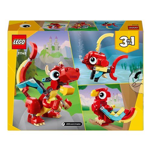 Copiii creativi de 6+ ani pot calatori catre un taram magic pentru povesti pline de amuzament cu setul de constructie 3 in 1 Dragon rosu (31145). Setul include un dragon prietenos, care are ochi mari si brate, maini, aripi, picioare, cap si gura articulate, astfel incat copiii sa poata alege cum sa-l foloseasca pentru aventuri in sesiunile de joaca si cum sa-l etaleze ulterior.