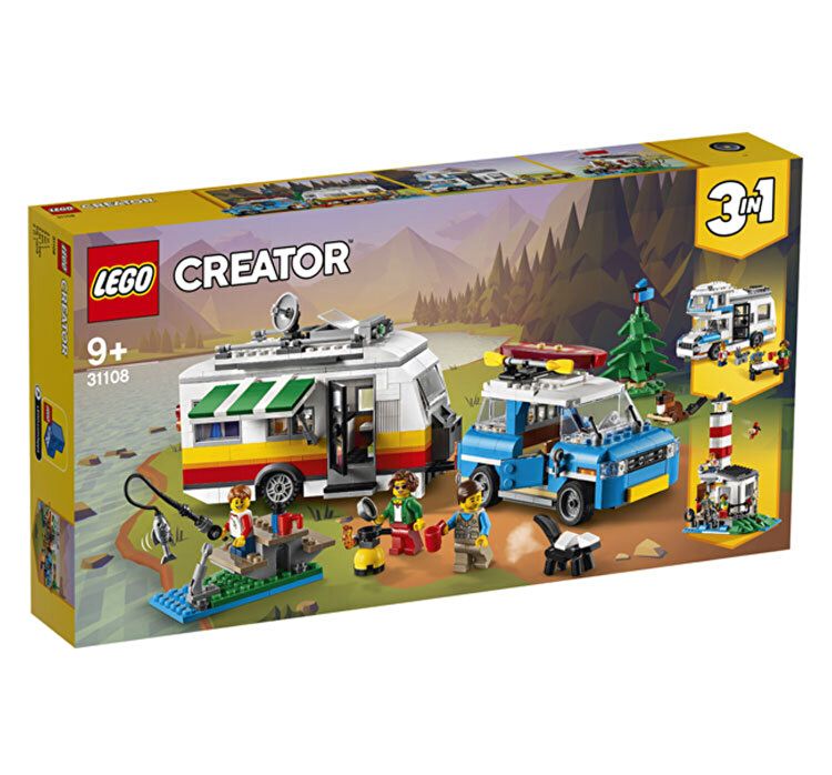 Impacheteaza-ti echipamentul de camping, e timpul de vacanta! Prinde rulota de masina retro super, si pleaca in natura pentru o vacanta in familie. Când gasesti locul potrivit, instaleaza-te, apoi pleaca sa prinzi un peste pentru cina. Oooh, uita ce animalut simpa... o, nu, un SCONCS! Dupa sperietura mirositoare, reconstruieste rulota si masina intr-o furgoneta de camping, sau un far rosu-alb. Vacantele in natura sunt o placere cu acest set minunat 3 in 1!