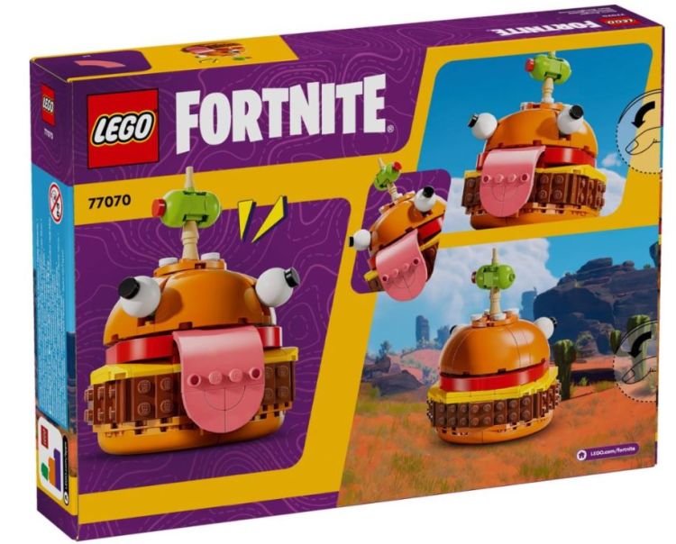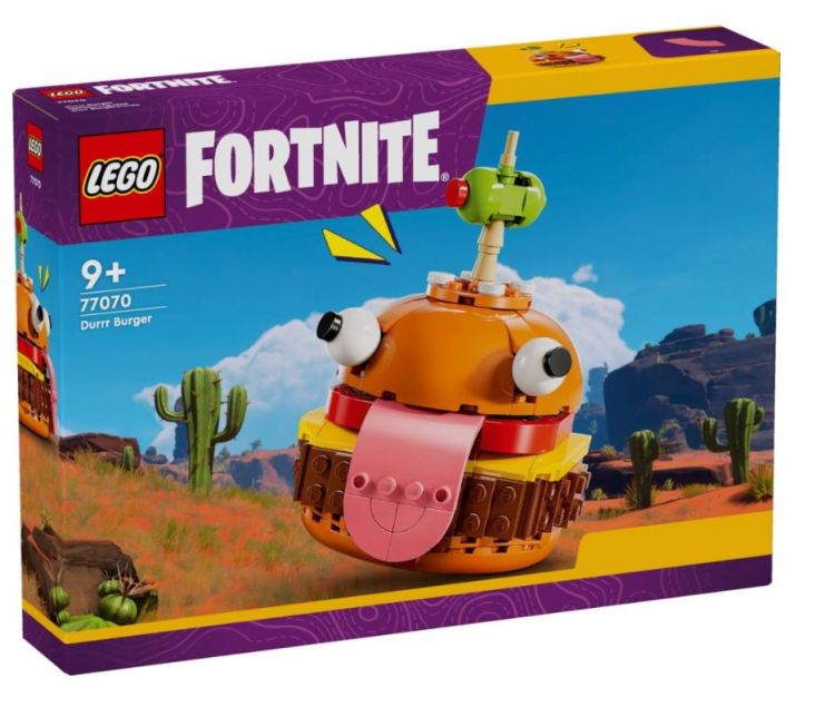 Bazat pe jocul video LEGO Fortnite, setul permite fanilor sa creeze un model de etalare reprezentandu-l pe Durrr Burger, emblematica mascota a restaurantului din universul Fortnite. Micii gameri vor avea parte de multa distractie si victorie bine facute in timp ce construiesc modelul si ii descopera detaliile interesante si usor de recunoscut precum ochii, limba si maslina pe o scobitoare.