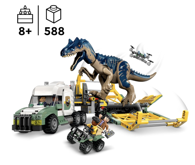 -LEGO Jurassic World. Misiunea Dinozaur: Camion de transport pentru un Allosaurus 76966, 588 piese