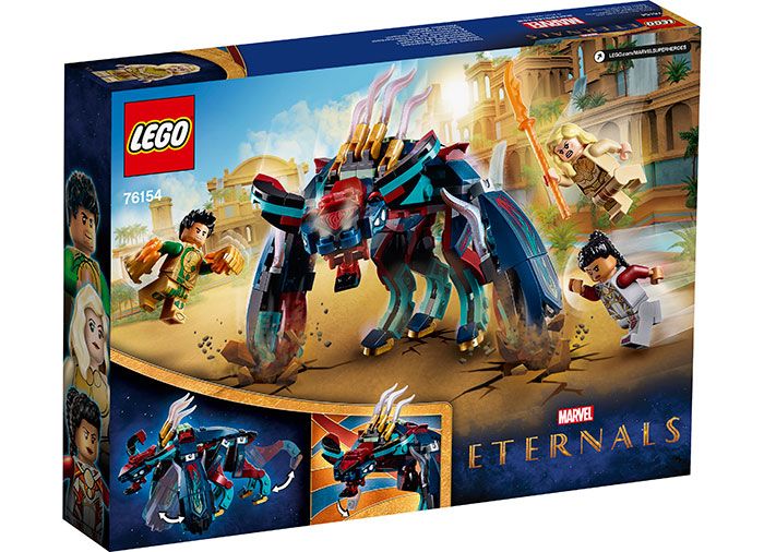 Cand un Deviant cu 6 picioare si gura muscatoare ataca 3 Eterni, Thena, Gilgamesh si Makkari, copiii trebuie sa le sara in ajutor cu toate abilitatile lor de super-eroi. Cu 3 minifigurine super-eroi, micutii pot imagina ca isi folosesc super-puterile: abilitatea Thenei de a invoca arme de mana, super-forta lui Gilgamesh si viteza fenomenala a lui Makkari. Iar daca jucaria este pentru un fan al minifigurinelor, acest formidabil set de joc LEGO este singurul in care apare minifigurina Gilgamesh!