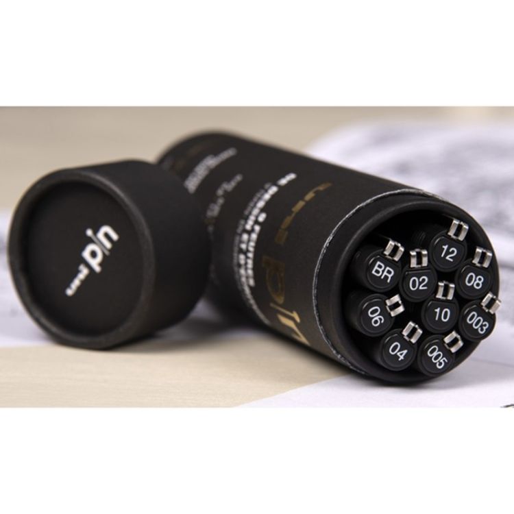 -Liner UNI PIN-200, set 9 buc + cutie cadou cilindrica, varfuri diverse, negru