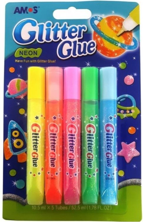 -Lipici lichid cu sclipici, culori neon, set 5 buc, Amos, GNE10B5