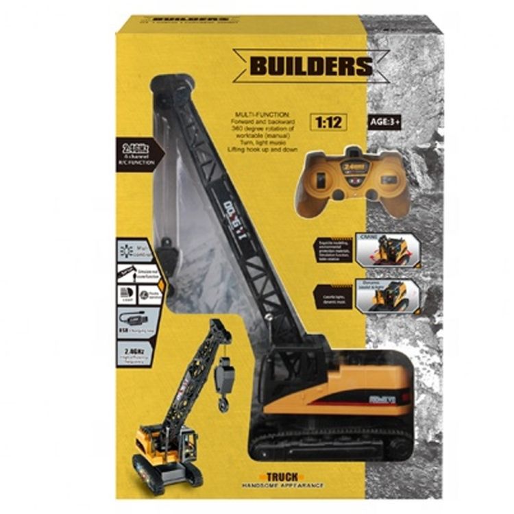 - Setul contine: 1 macara realizata la scara 1: 12, 1 telecomanda, 1 cablu USB de incarcare si 1 acumulator.