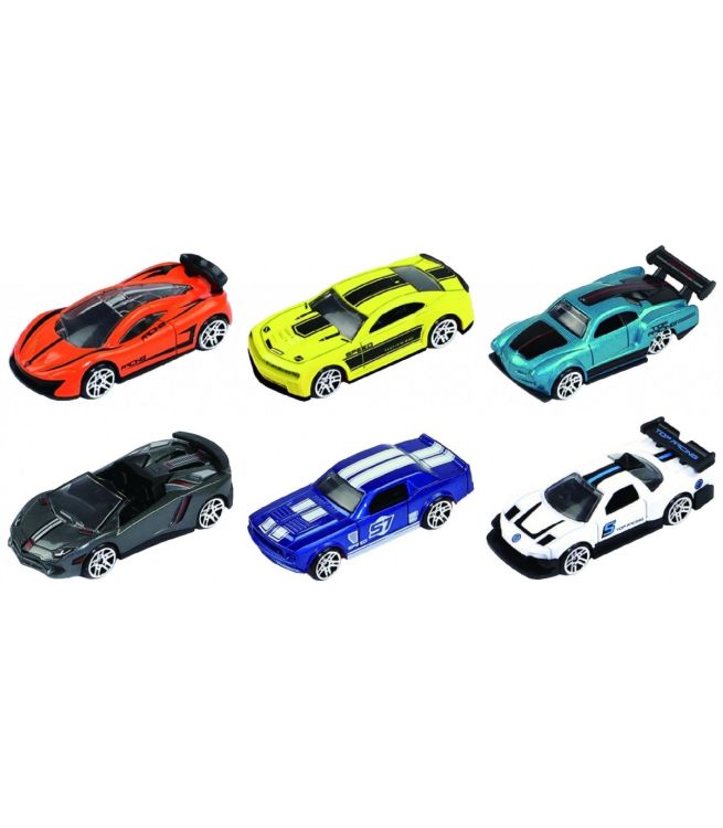 -Machete Die Cast, set 6 masini de curse, diverse modele si culori, 1/64