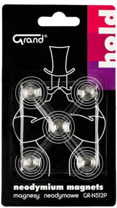 Magneti neodim cu buton Grand GR-N512P, 12mm, set 5 buc