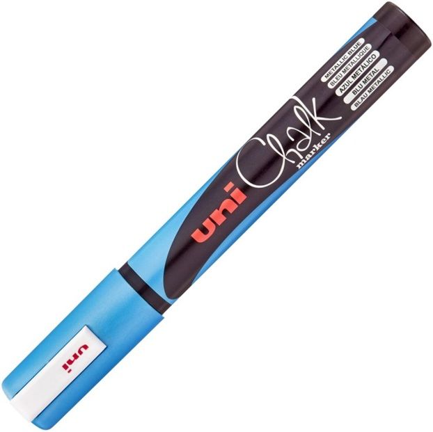 -Marker cu creta UNI Chalk PWE-5M, varf rotund, 1. 8-2. 5mm, Albastru metalizat