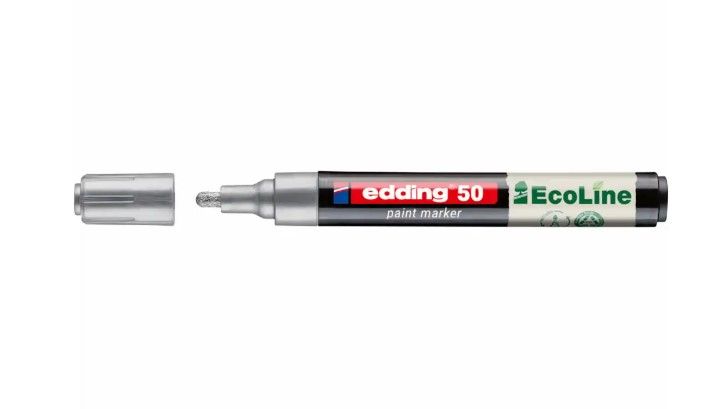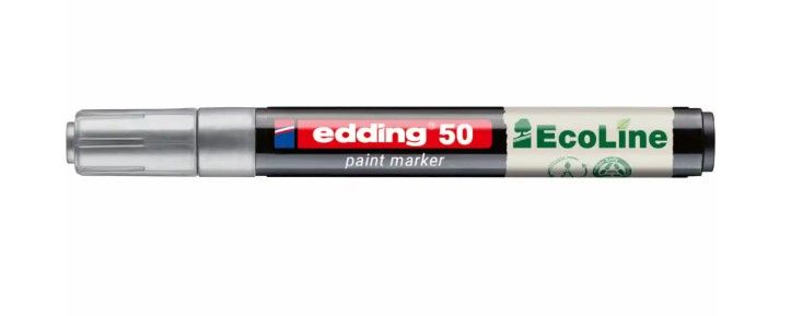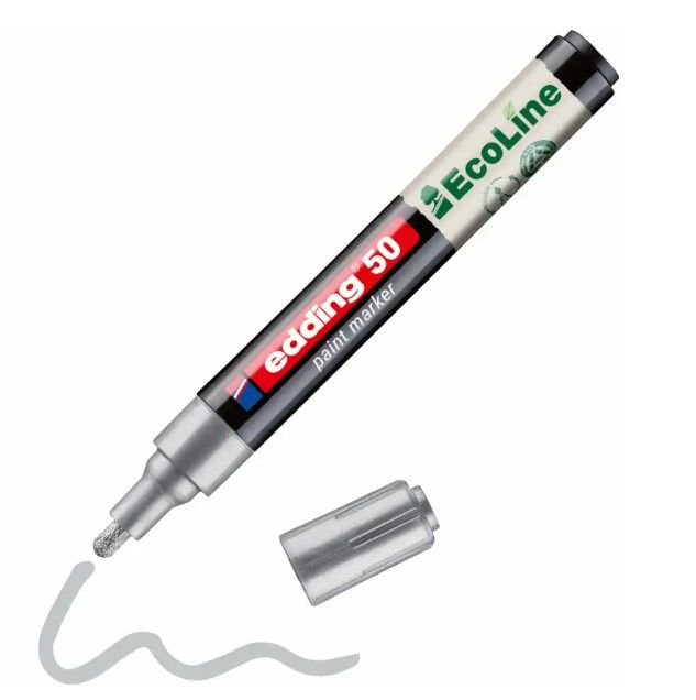 -Marker cu vopsea pe baza de apa Edding Ecoline 50, corp din plastic reciclat, varf rotund, 2-3 mm, argintiu