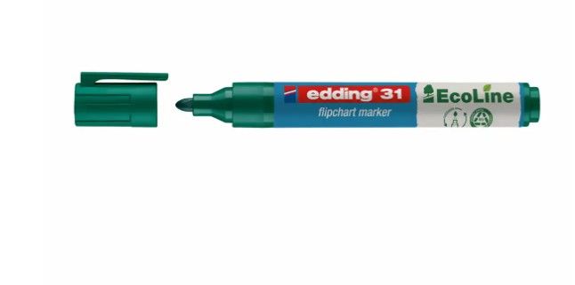 Descopera markerul edding 31 EcoLine, perfect pentru scrierea si marcarea pe hartia de flipchart, carti de prezentare si alte foi de hartie. Acest marker ecologic este realizat din cel putin 90% material plastic reciclat, din care 83% provin din plastic post-consumator, contribuind astfel la protejarea mediului inconjurator.