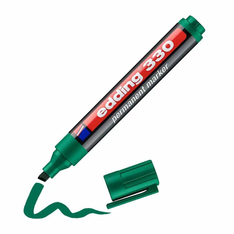 -Marker permanent Edding 330, corp plastic, varf retezat, 1-5 mm, verde