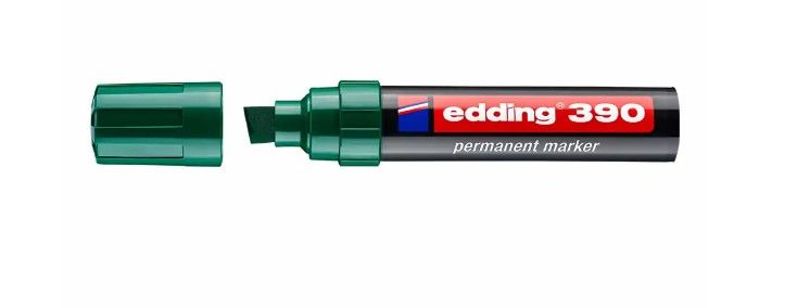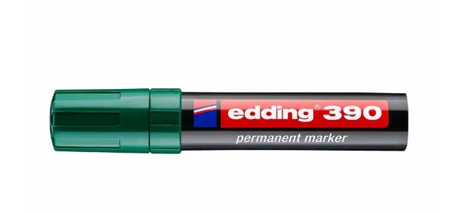 Markerul permanent Edding 390 este disponibil in culorile negru, rosu, albastru si verde, fiind alegerea perfecta pentru birou, acasa sau in depozite. Cu o cerneala care se usuca rapid, este ideal chiar si pentru stangaci, oferind o rezistenta excelenta la pete si murdarie.