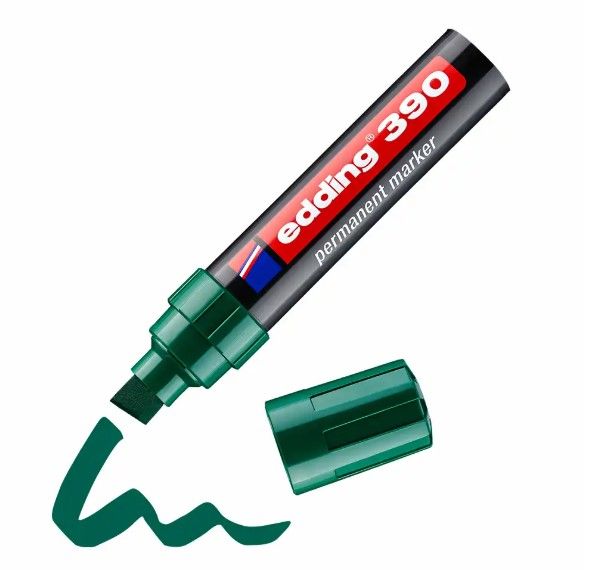 -Marker permanent Edding 390, corp plastic, varf retezat 4-12 mm, verde
