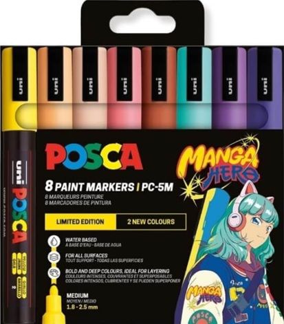 -Marker UNI PC-5M 1. 8-2. 5 mm set 8 culori MANGA HERO, Posca (M1644)