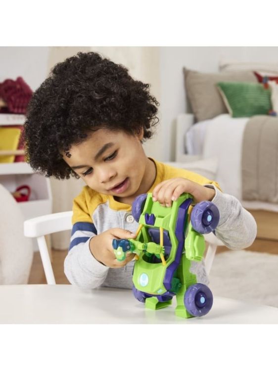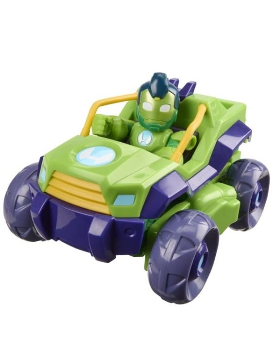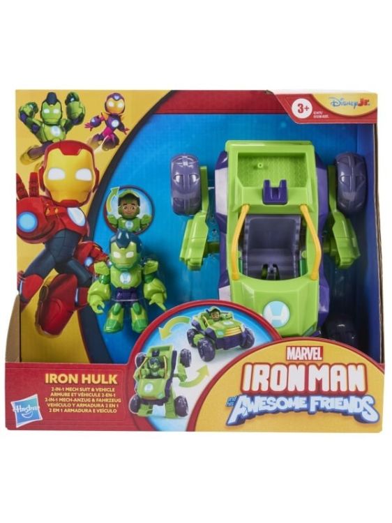 Setul din colectia Marvel Iron Man si prietenii sai uimitori aduce actiunea preferata a copiilor direct in jocul lor. Setul include o figurina Iron Man si un vehicul transformabil care se schimba rapid din masina de viteza in costum mech pregatit de lupta. Cu detalii colorate si design robust, jucaria incurajeaza imaginatia si recreeaza scene spectaculoase din serialul Disney Jr. Potrivit pentru copiii de la 3 ani in sus, acest set este perfect pentru micii fani Marvel care adora aventura si joaca plina de energie. Acest pachet contine personajul Iron Hulk.