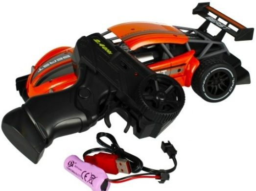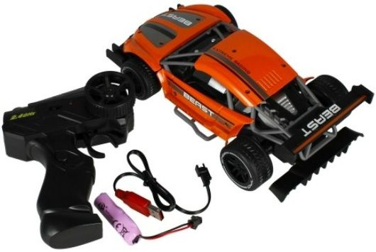 Conținutul setului: mașină de curse, telecomandă, încărcător de baterie.