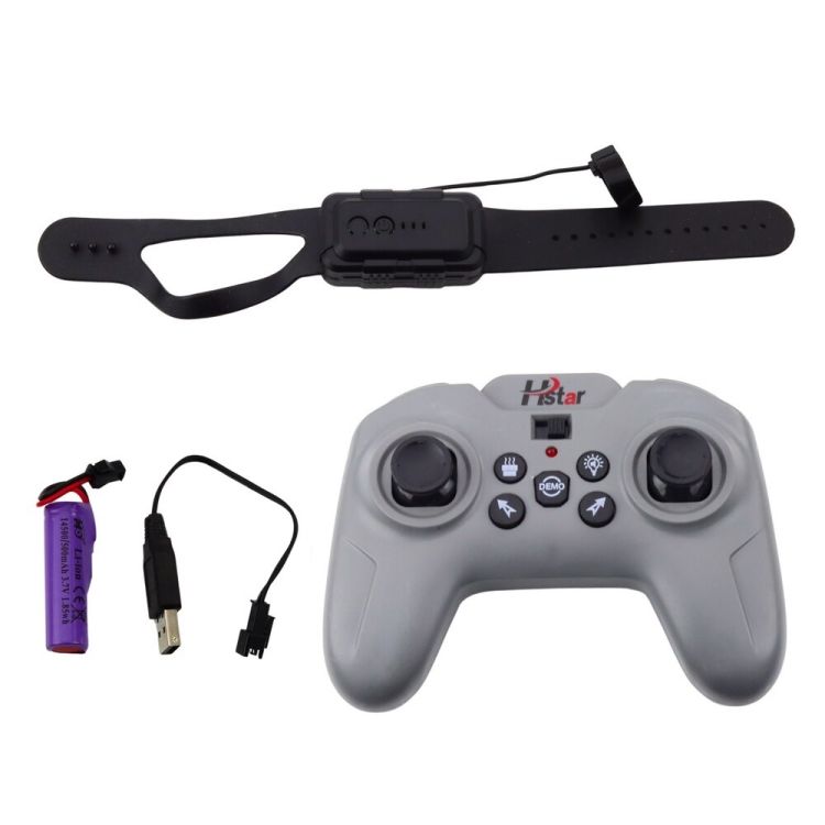 - Pachetul contine 1 masina RC, 1 telecomanda cu 11 canale, 1 controler tip ceas, 1 acumulator reincarcabil, 1 cablu USB si 1 pipeta.