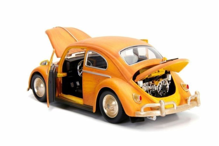 Masinuta de metal Transformers VW Beetle, scara 1: 24. Figurina de metal este inclusa. Portierele, capota si portbagajul se pot deschide.