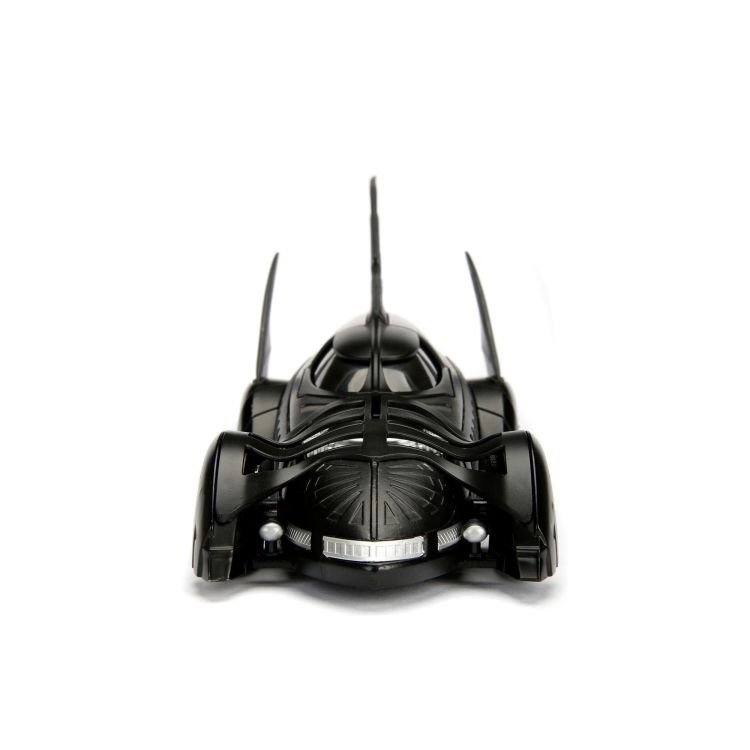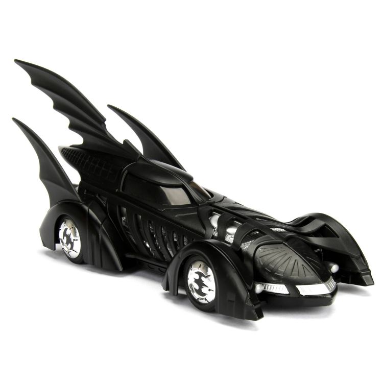 Masinuta de metal, Batmobile, model 1995, 20 cm, freewheel, cu usi ce se pot deschide. Setul include si o figurina de metal Batman, 7 cm