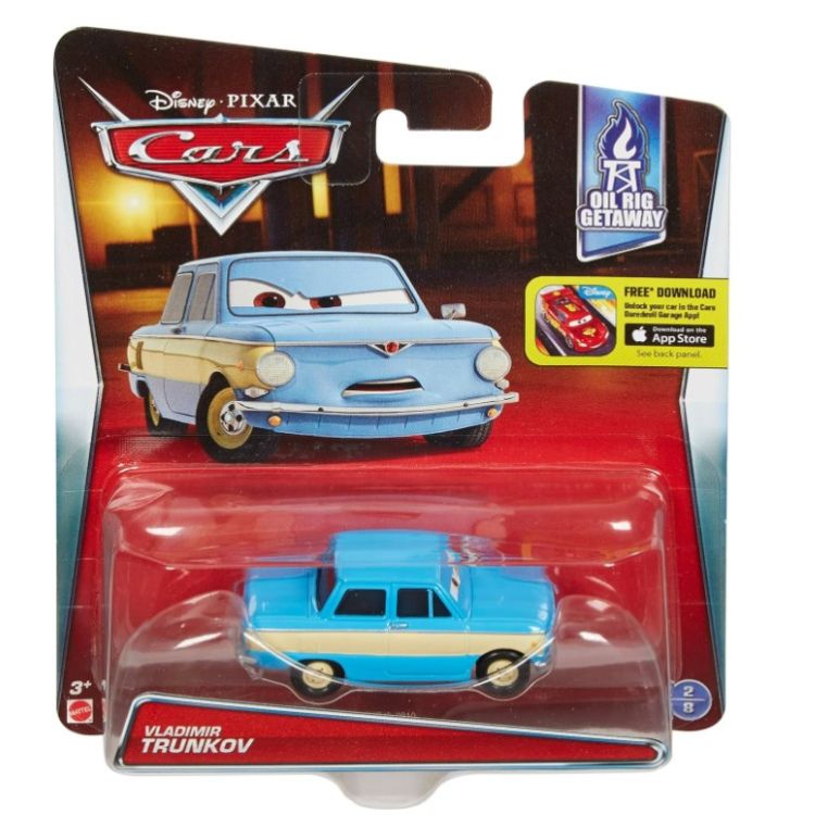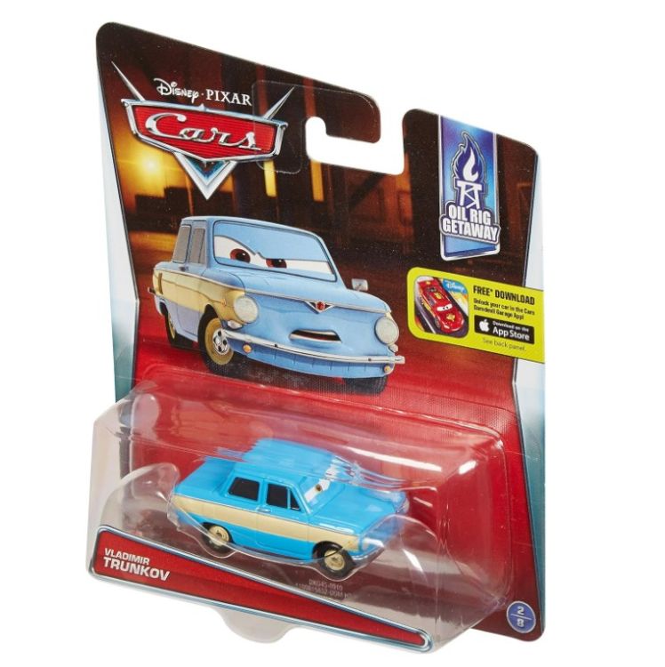 Acesta masinuta este realizata foarte in detaliu, cu o culoare impecabila, deci nu poate lipsi din colectia ta. Joaca cu acest model ne ajuta sa retraim scenele favorite din filmul Cars de la Disney Pixar. Masinuta este construita la o scara de 1 la 55, cu o dimensiune aproximativa de 9-10cm. Este construita din metal si are si parti din plastic. Intra in universul Cars3, o lume plina de aventuri automobilistice. Acest pachet contine o masinuta cu personajul Vladimir Trunkov.