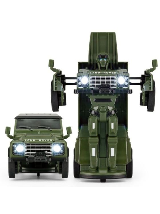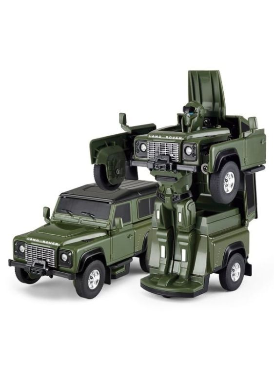 Masinuta Land Rover Defender verde este gata de a iesi din cutie! Poate fi masinuta sau robot! Efecte luminoase si sunete in timpul miscarii. Masinuta are proportiile ideale pentru momente pline de distractie si amuzament, avand dimensiunile in centimetri dupa cum urmeaza 13. 5*9. 5*15. 5cm. Masinuta metalica Land Rover Defender verde, scara 1 la 32, are anvelope de cauciuc si un design detaliat interior-exterior realizat din material metalic turnat cu accesorii realizate din material plastic portiere de calitate superioara. Copilul dumneavoastra se poate juca in voie cu masina metalica Land Rover Defender verde oferita de brandul international Rastar. Nicio cursa nu este imposibil de castigat cu acesta masinuta, care este o replica oficiala cu licenta a modelului original, construita cu mare atentie la detalii. Pasionatii si colectionarii de machete metalice pot de asemenea aprecia aceasta macheta metalica.