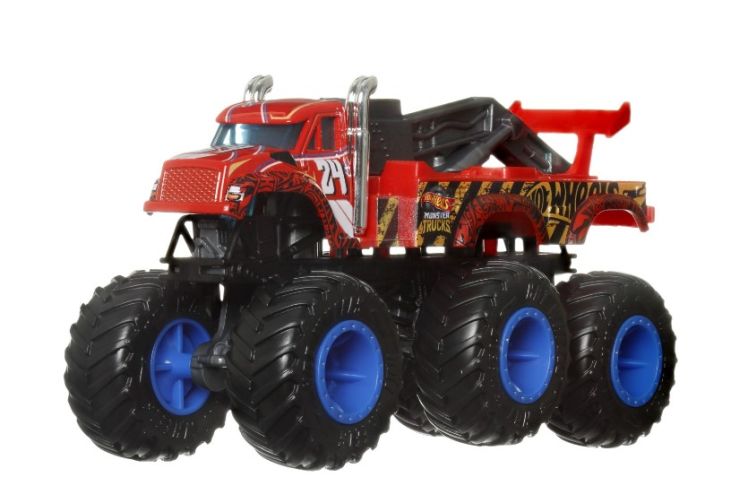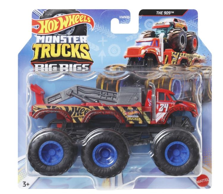 Fiecare camion turnat sub presiune surprinde cu stilul si personalitatea unui personaj sau a unei creaturi populare Monster Truck la scara 1: 64. Porneste in aventuri cu camioanele Hot Wheels Monster Trucks Big Rigs! Fiecare vehicul la scara 1: 64 transmite personalitatea popularelor creaturi Monster Truck cu decalcomanii atragatoare pe care fanii le adora. Copiii pot transporta vehicule suplimentare la scara 1: 64 pe platforma sau cu carligul de remorcare de pe Big Rig. Acest pachet contine personajul The 909.