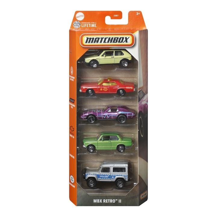-Matchbox Set 5 masinute metalice MBX Retro II scara 1: 64