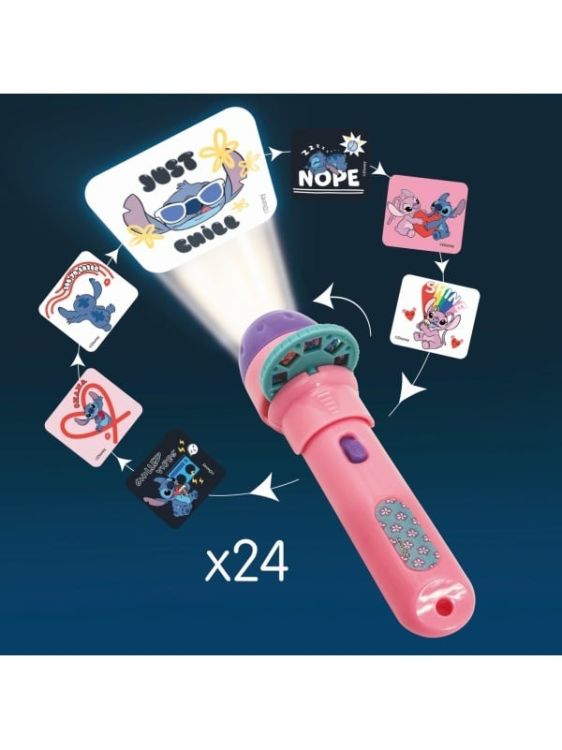 Paseste in lumea magica a lui Stitch de la Disney cu acest mini proiector conceput pentru tinerii fani. Deschide clapeta, introduce un disc si bucura-te de o prezentare magica a momentelor tale preferate cu Stitch. Perfect pentru distractie inainte de culcare sau aventuri cu povesti. Distreaza-te cu personajul tau favorit, Stitch, cu acest mini-proiector, care contine 3 discuri, fiecare disc are 8 imagini diferite cu eroul tau. Functioneaza cu 3 baterii AG13/LR44, incluse.
