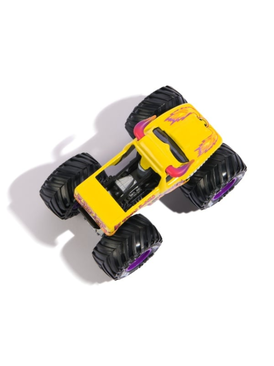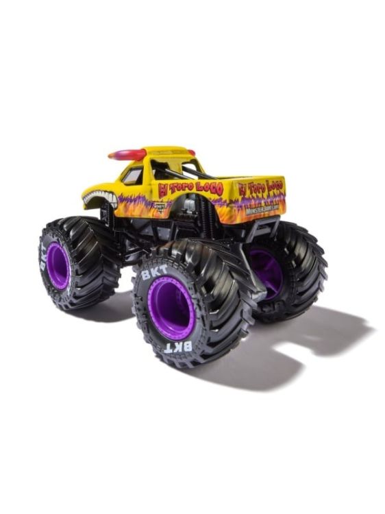 Masina oficiala a spectacolului Monster Jam. Un vehicul hiper detaliat, fidel eroilor spectacolului, cu un aspect agresiv si suspensii realiste pentru a face cascadoriile intr-un mod cat mai spectaculos. Macheta este metalica si foarte bine realizata. Foarte rezistenta. Monster Jam ofera mai multe detalii si grafica decat oricand! Cu anvelopele oficiale BKT, jante cromate stilizate si un sasiu autentic cu detalii cromate, acest camion monstru intruchipeaza stilul si volanul omologului sau din viata reala! PLUS, acest camion cu scara 164 vine cu un sofer turnat in scaunul soferului. Setul include Un camion Monster Truck Monster Jam Colectia de postere Figurina turnata sofer. Acest pachet contine personajul El Toro Loco.