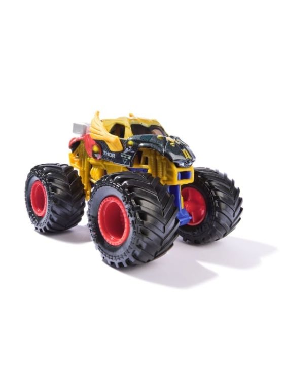Paseste in universul plin de actiune in care Monster Jam huruie si supereroii Marvel se inalta. Seria de camioane vopsite Marvel Monster Jam la scara 164 nu este doar o colectie. Este un omagiu adus Universului Marvel. Aceste camioane de tip monster truck, inscriptionate cu simbolurile si culorile unor embleme precum Thor, Captain America, Iron Man, Black Panther si Spider-Man, aduc acasa spectacolul superputerilor si al cascadoriilor de pe stadion. Cu anvelope autentice BKT si o caroserie cu tematica de erou, aceste camioane capteaza distractia evenimentelor Monster Jam si esenta supereroilor pe care ii reprezinta. Colectia de supereroi le permite copiilor sa recreeze cascadorii si sarituri uluitoare, aducand actiunea Monster Jam acasa. Aceste jucarii sunt concepute atat pentru joaca, cat si pentru expunere, starnind imaginatia si permitand povestirea cu fiecare rotire a rotilor. Ideale pentru tinerii fani, camioanele Marvel Monster Jam sunt un catalizator pentru creativitate, eroism si aventura, permitandu-le copiilor sa isi creeze propriile povesti despre curaj si rezistenta. Porneste motoarele si pregateste-te pentru o perioada de joaca de-a dreptul epica - unde eroii intalnesc cai putere si actiunea Monster Jam nu se termina niciodata. Acest pachet contine camionul Thor.