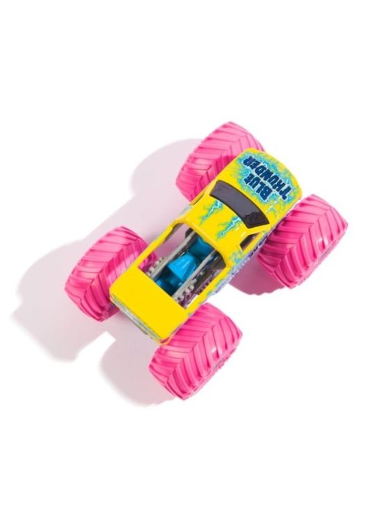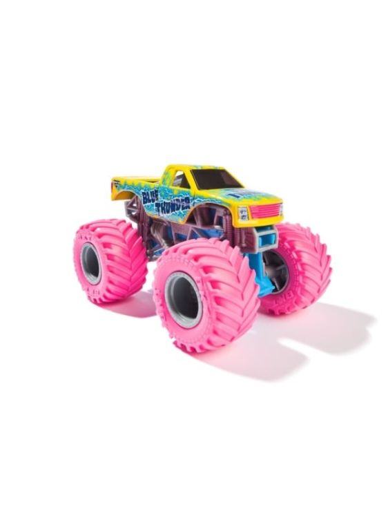 Masina oficiala a spectacolului Monster Jam. Un vehicul hiper detaliat, fidel eroilor spectacolului, cu un aspect agresiv si suspensii realiste pentru a face cascadoriile intr-un mod cat mai spectaculos. Macheta este metalica si foarte bine realizata. Foarte rezistenta. Monster Jam ofera mai multe detalii si grafica decat oricand! Cu anvelopele oficiale BKT, jante cromate stilizate si un sasiu autentic cu detalii cromate, acest camion monstru intruchipeaza stilul si volanul omologului sau din viata reala! PLUS, acest camion cu scara 164 vine cu un sofer turnat in scaunul soferului. Setul include Un camion Monster Truck Monster Jam Colectia de postere Figurina turnata sofer. Acest pachet contine personajul Blue Thunder.