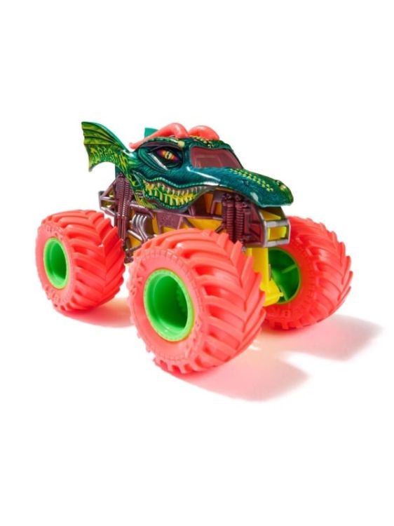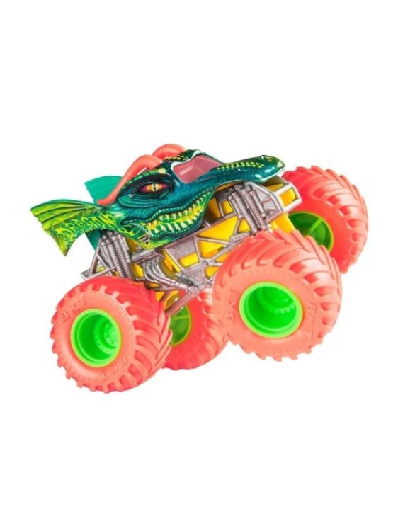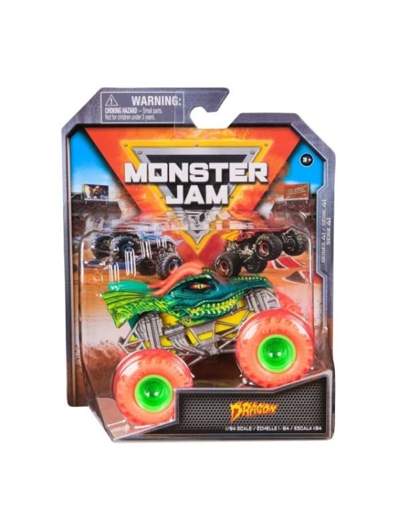 Masina oficiala a spectacolului Monster Jam. Un vehicul hiper detaliat, fidel eroilor spectacolului, cu un aspect agresiv si suspensii realiste pentru a face cascadoriile intr-un mod cat mai spectaculos. Macheta este metalica si foarte bine realizata. Foarte rezistenta. Monster Jam ofera mai multe detalii si grafica decat oricand! Cu anvelopele oficiale BKT, jante cromate stilizate si un sasiu autentic cu detalii cromate, acest camion monstru intruchipeaza stilul si volanul omologului sau din viata reala! PLUS, acest camion cu scara 164 vine cu un sofer turnat in scaunul soferului. Setul include Un camion Monster Truck Monster Jam Colectia de postere Figurina turnata sofer. Acest pachet contine personajul Dragon.