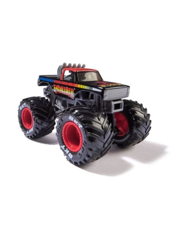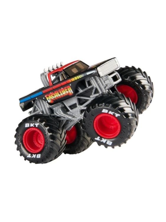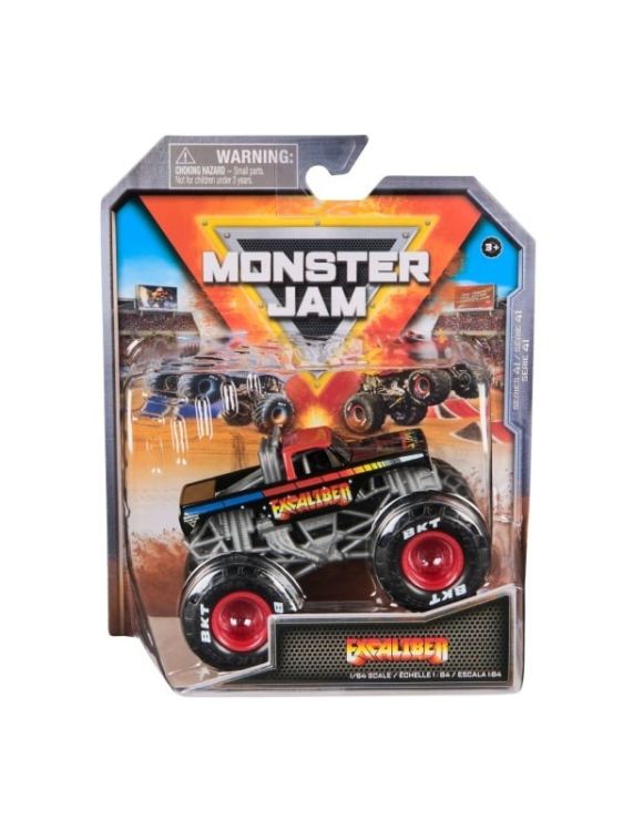 Masina oficiala a spectacolului Monster Jam. Un vehicul hiper detaliat, fidel eroilor spectacolului, cu un aspect agresiv si suspensii realiste pentru a face cascadoriile intr-un mod cat mai spectaculos. Macheta este metalica si foarte bine realizata. Foarte rezistenta. Monster Jam ofera mai multe detalii si grafica decat oricand! Cu anvelopele oficiale BKT, jante cromate stilizate si un sasiu autentic cu detalii cromate, acest camion monstru intruchipeaza stilul si volanul omologului sau din viata reala! PLUS, acest camion cu scara 164 vine cu un sofer turnat in scaunul soferului. Setul include Un camion Monster Truck Monster Jam Colectia de postere Figurina turnata sofer. Acest pachet contine personajul Exacaliber.