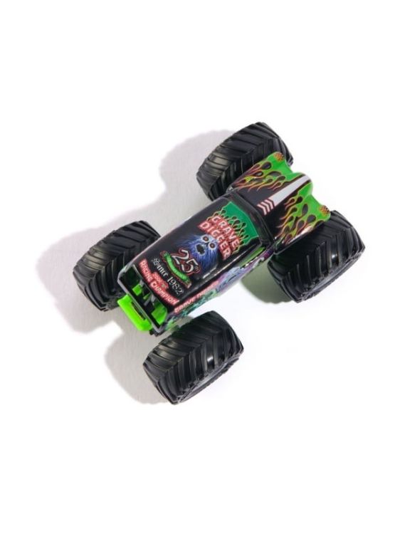 Masina oficiala a spectacolului Monster Jam. Un vehicul hiper detaliat, fidel eroilor spectacolului, cu un aspect agresiv si suspensii realiste pentru a face cascadoriile intr-un mod cat mai spectaculos. Macheta este metalica si foarte bine realizata. Foarte rezistenta. Monster Jam ofera mai multe detalii si grafica decat oricand! Cu anvelopele oficiale BKT, jante cromate stilizate si un sasiu autentic cu detalii cromate, acest camion monstru intruchipeaza stilul si volanul omologului sau din viata reala! PLUS, acest camion cu scara 164 vine cu un sofer turnat in scaunul soferului. Setul include Un camion Monster Truck Monster Jam Colectia de postere Figurina turnata sofer. Acest pachet contine personajul Grave Digger.