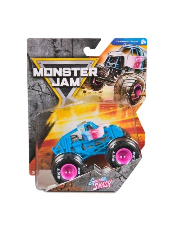 Masina oficiala a spectacolului Monster Jam. Un vehicul hiper detaliat, fidel eroilor spectacolului, cu un aspect agresiv si suspensii realiste pentru a face cascadoriile intr-un mod cat mai spectaculos. Macheta este metalica si foarte bine realizata. Foarte rezistenta. Monster Jam ofera mai multe detalii si grafica decat oricand! Cu anvelopele oficiale BKT, jante cromate stilizate si un sasiu autentic cu detalii cromate, acest camion monstru intruchipeaza stilul si volanul omologului sau din viata reala! PLUS, acest camion cu scara 164 vine cu un sofer turnat in scaunul soferului. Setul include Un camion Monster Truck Monster Jam Colectia de postere Figurina turnata sofer. Acest pachet contine personajul Sparkle Smash.