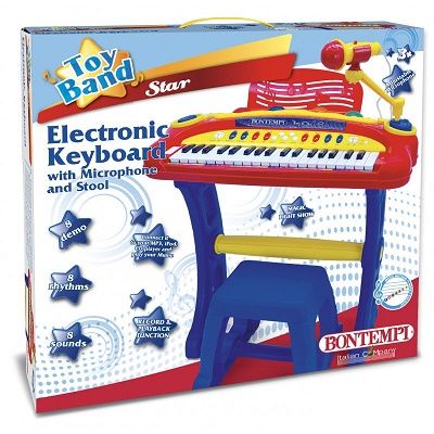 Orga electronica albastra cu scaun si microfon, Bontempi