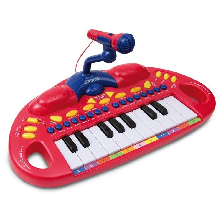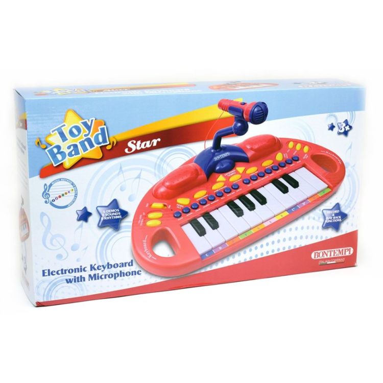 Orga electronica cu 18 clape si microfon ajustabil are 8 ritmuri, 8 sunete, 6 cantece demonstrative si buton de reglare a volumului si a ritmului. Creativitatea muzicala a copiilor este rasplatita prin functiile de inregistrare si de redare a melodiei.