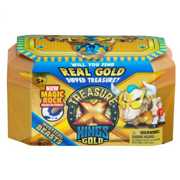 Gaseste Aurul Regelui cu noua colectie Treasure X, King's Gold! Un nou material in care puteti sapa si pe care il puteti modela ulterior si 24 creaturi mitice ce te asteapta sa le descoperi! Pachetul contine 1 sarcofag, 1 material roca magica, 1 figurina creatura mistica, 1 arma, 1 scut, 1 insecta, 1 unealta de sapat, 1 ghidul colectionarului Vei gasi comoara suflata cu aur adevarat? Nu uita, X marcheaza locul!