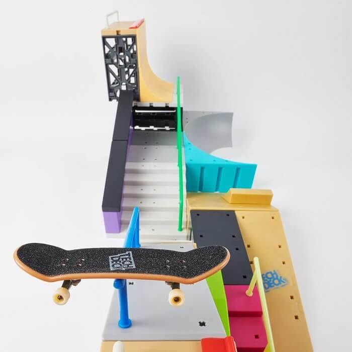 Construieste-ti skatepark-ul de vis cu Tech Deck Neon Mega Park. Acest set masiv de rampe X-Connect Park Creator care straluceste in intuneric include tot ce ai nevoie pentru a construi si a personaliza un mega parc incredibil pentru ca tu sa-ti perfectionezi abilitatile de skateboarding. Configureaza toate rampele, sinele, marginile, seturile de scari si multe altele in diferite combinatii pentru a invata si a perfectiona tricks-urile. Fa un grind, aluneca pe suprafete si sari peste scari sau configureaza si personalizeaza parcul oricum iti doresti. Foloseste cele doua fingerboards Blind Skateboards si Cartonasele de Tricks pentru a trage diferite tricks pentru fingerboards si a te intrece cu prietenii tai. Trage cartea iar cel care poate sa realizeze trick-ul atunci cand ii vine randul castiga. Combina parcul cu alte rampe compatibile X-Connect, precum seturile de rampe Big Vert Wall sau Flip N’ Grind (fiecare vandut separat) pentru a construi parcul suprem in care vei face tricks demente. Foloseste Neon Mega Park Creator cu colectia de fingerboards Tech Deck sau Tech Deck BMX (fiecare vandut separat). Placile si seturile de rampe Tech Deck sunt pentru copiii si iubitoriii de skate cu varsta de cel putin 6 ani. Daca iti doresti o grafica de placa reala de la companiile de skateboard-uri reale, atunci trebuie sa fie Tech Deck – incepe de jos, devino un profesionist si colectioneaza-le pe toate.