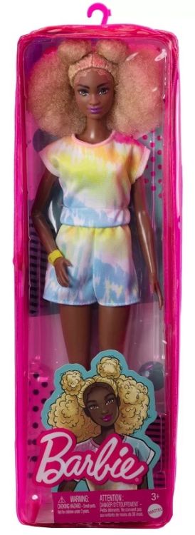 Fashionistas este una dintre cele mai indragite colectii Barbie, oferind o gama larga de papusi cu diferite stiluri si accesorii, introducand conceptul de diversitate si acceptare in randul fetelor. Aceasta colectie include papusi cu diferite tipuri de siluete, tonuri de piele, culori de ochi si par, astfel fetele nu se vor plictisi niciodata si isi vor gasi papusa asemanatoare stilului lor. Papusile au stilul lor propriu, inspirat de ultimele tendinte din moda si vin cu o tinuta completa, incaltaminte si accesorii fabuloase. Hainutele sunt confectionate astfel incat se pot potrivi oricarei papusi din gama Fashionistas. Descopera fiecare papusa Barbie din colectia Barbie Fashionistas si exploreaza lumea minunata a modei! Papusa cu par blond afro este imbracata intr-o salopeta cu un imprimeu interesant cu albastru si roz. In picioare are o pereche de sneakersi albi.
