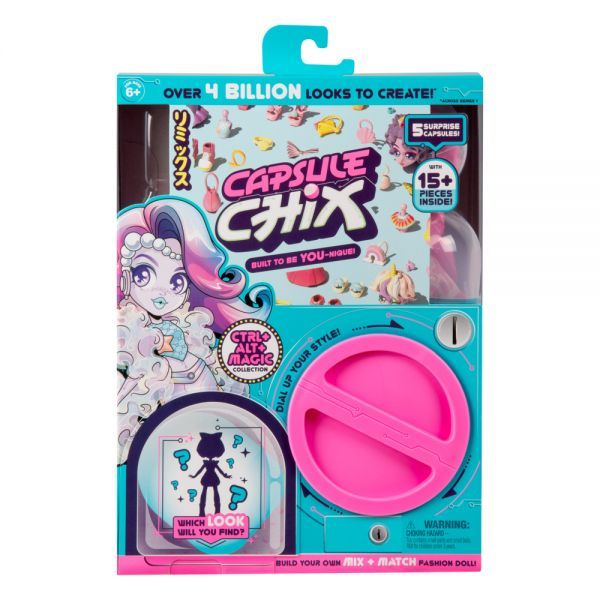 Capsule Chix sunt noua linie de papusi colectibile de la Moose! Colectioneaza toate papusile din colectie si poti crea peste 4 miliarde de tinute extraordinare. Poate vei descoperi una dintre cele 4 papusi exclusive cu accesorii spectaculoase! Papusile Capsule Chix au 4 colectii diferite din care poti alege: Ram Rock Sweet Circuits Giga Glam Ctrl + Alt + Magic. Fiecare colectie contine 4 papusi. In fiecare pachet Capsule Chix veti gasi: 5 capsule surpriza pe care le puteti scoate dupa invartirea rotii din dreapta; elemente surpriza: fashion, par, accesorii; 1 papusa completa ce se va construi din cele 5 capsule; fiecare papusa are 14 puncte de articulatie Toate elementele gasite intr-un pachet se potrivesc cu orice alte piese din colectie! Dupa colectionarea tuturor papusilor disponibile veti putea crea peste 4 miliarde de tinute.