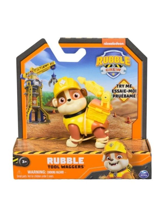Extinde-ti si mai mult universul PATRULA CatELUsILOR cu figurina Rubble si echipa lui, Charger Tool Wagger! Charger este imbracat in uniforma lui Rubble si echipa lui si include un rucsac special conceput, fabricat din plastic de inalta calitate, ce are o masina de gaurit mobila care pivoteaza in sus si in jos, astfel incat copiii pot crea jocuri de constructie palpitante cu catelul lor preferat, exact ca in serial! Ia acasa toate figurinele Tool Waggers pentru a colectiona figurinele de joaca exclusive Rubble, Wheeler, Mix si Charger. (fiecare se vinde separat) Pentru si mai multe moduri interesante de a te juca, cauta toate jucariile cu camioane de constructii Rubble si echipa lui, plusurile, figurinele de jucarie si seturile de joaca cu nisip Kinetic de constructie Build-It, impreuna cu setul de joaca Turnul Macara Bark Yard si setul de joaca Atelierul lui Rubble pentru a construi si mai mult lumea ta de constructii in joaca de-a imaginatia (fiecare se vinde separat)! Atunci cand cautati jucarii prescolare pentru varste de 2-4 ani, jucariile Rubble si echipa lui pentru copii cu varste de 3 ani si mai mari sunt o achizitie de preferat! Luati acasa energia lui Rubble si echipa lui cu figurina Tool Waggers, Charger! Acest pachet contine personajul Rubble.